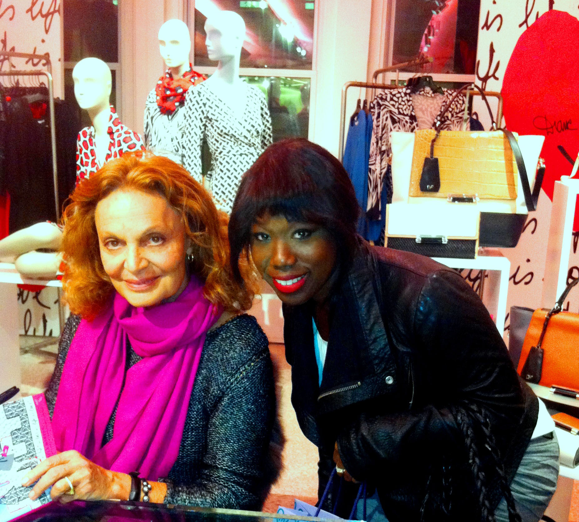 The conversation continued with comments about the future of fashion shows in the digital age, accessories on the runway, Yves St. Laurent’s Collection and John Galliano’s racist remarks. Diane brought up some major points including that shoes are really not accessories since a woman thinks about where she is going and if she will have to walk first before deciding the rest of her outfit. She also mentioned that 3D printing is big now and that if you don’t know what it is you will. When asked about the price of clothes going through the roof, Diane commented saying that her wrap dress “…was 86 dollars back in the day, now it’s about 400 dollars.” She explained that “things are different” and designers have more expenses. In the past, models would bring their own shoes to runway shows.